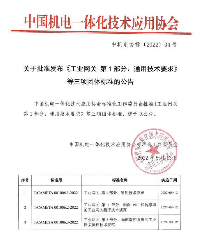 2022年5月13日,九州酷游ku游智通核心参编的工业网关标准,已正式顺利获得审批!将于2022年8月12日正式实施!