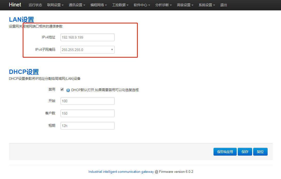1.网关LAN口IP与PLC的IP是否在同一网段,进网关后台,点击“通讯设置 - LAN设置”,修改网关LAN口IP,使其与PLC的IP处于同网段。